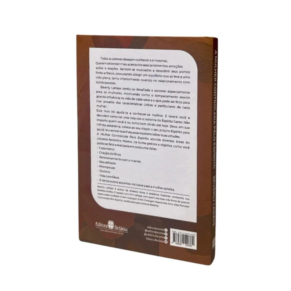 Neste livro, Beverly LaHaye oferece uma abordagem prática para as mulheres, ajudando-as a entender seu temperamento e como ele influencia suas vidas. Com foco no controle do Espírito Santo, a autora mostra como vencer fraquezas e potencializar virtudes, levando à plenitude e felicidade. A Mulher Controlada Pelo Espírito aborda temas essenciais como casamento, criação de filhos, relacionamento com o marido, sexualidade, menopausa, divórcio e vida com Deus, oferecendo orientações para uma vida equilibrada e realizada.