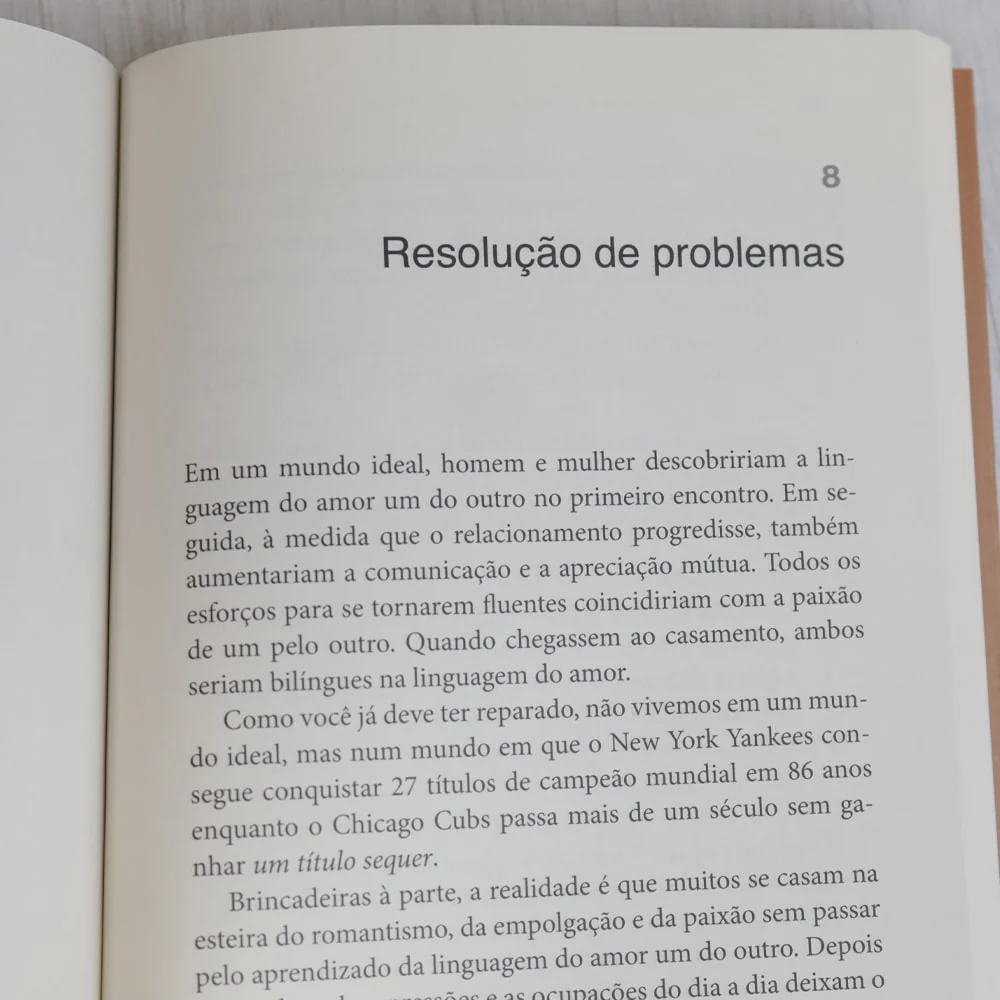 Você poderá se descobrir, mais uma vez, vivendo com uma mulher alegre e realizada. E, se ela aprender a falar a sua linguagem do amor, você de fato será um homem plenamente feliz em sua vida conjugal. Este livro é fruto de trinta anos de pesquisas clínicas e de uma vida de experiência pessoal do Dr. Gary Chapman. Sua grande descoberta foi a constatação de que existem apenas cinco linguagens básicas do amor – cinco maneiras de expressar seu afeto. Para que marido e mulher consigam se conectar emocionalmente, precisam aprender a comunicar amor na linguagem que seja significativa para o cônjuge.