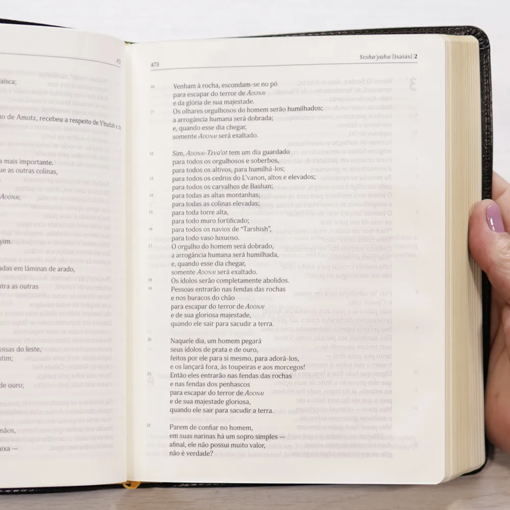 Esta Bíblia se destaca por ser a única versão em português com estilo e apresentação totalmente judaicos.
