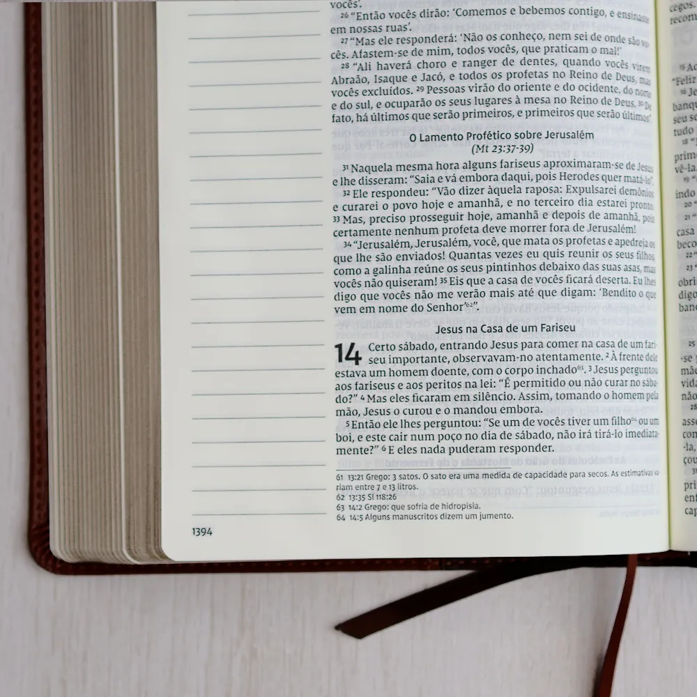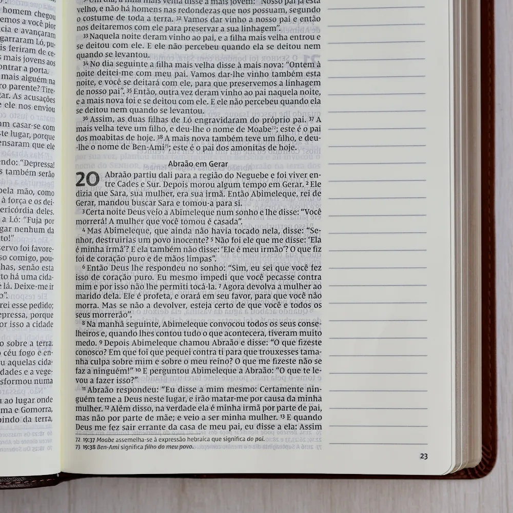 Pensando nisso, esta Bíblia foi criada para quem ama fazer anotações e comentários que complementam a Palavra. Com margens amplas e um papel de alta qualidade, você pode escrever com liberdade, sem comprometer a legibilidade do texto sagrado. Além disso, a fonte exclusiva da Thomas Nelson Brasil garante uma leitura clara e agradável, enquanto suas anotações ganham destaque.