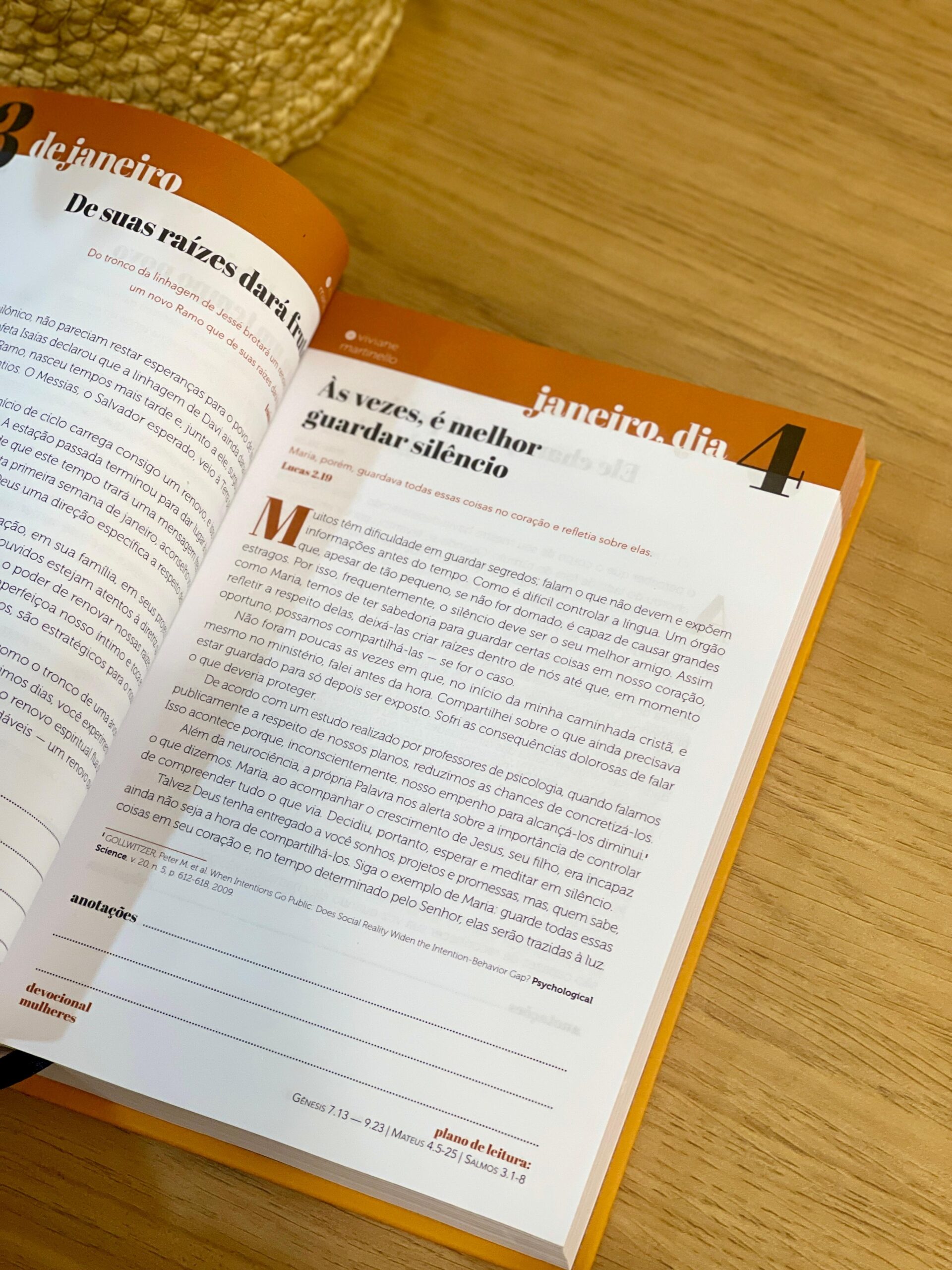 Neste Devocional Anual, Viviane Martinello convida você a mergulhar em reflexões profundas sobre temas essenciais à vida da mulher cristã: relacionamentos, perdão, serviço, chamado, família, casamento e muito mais.