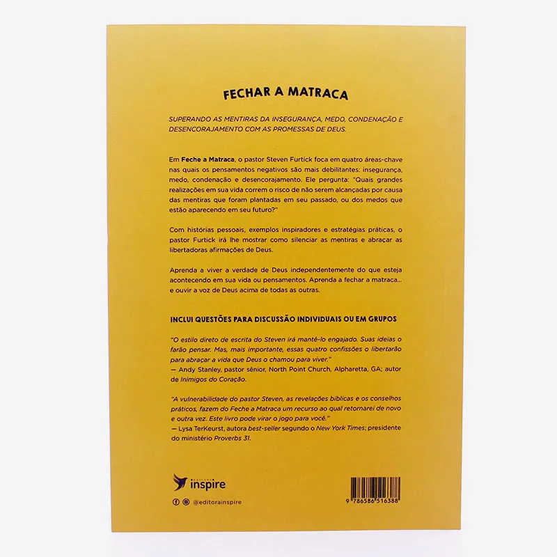 Em Feche a Matraca, o pastor Steven Furtick foca em quatro áreas chave nas quais os pensamentos negativos são mais debilitantes: insegurança, medo, condenação e desencorajamento. Ele pergunta: Quais grandes realizações em sua vida correm o risco de não serem alcançadas por causa das mentiras que foram plantadas em seu passado, ou dos medos que estão aparecendo em seu futuro?