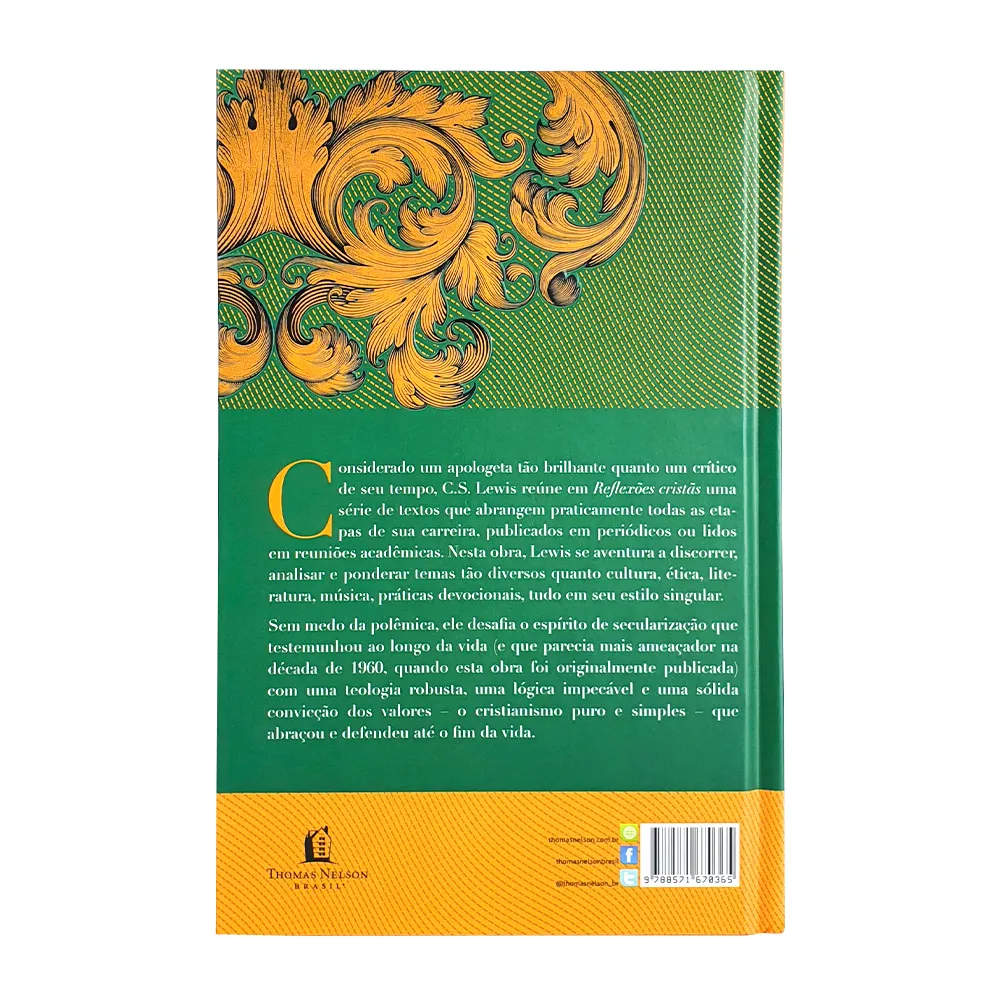 Considerado um apologeta tão brilhante quanto um crítico de seu tempo, C. S. Lewis reúne em Reflexões cristãs uma série de textos que abrangem praticamente todas as etapas de sua carreira, publicados em periódicos ou lidos em reuniões acadêmicas. Nesta obra, Lewis se aventura a discorrer, analisar e ponderar temas tão diversos quanto cultura, ética, literatura, música, práticas devocionais, tudo em seu estilo singular. Sem medo da polêmica, ele desafia o espírito de secularização que testemunhou ao longo da vida (e que parecia mais ameaçador na década de 1960, quando esta obra foi originalmente publicada) com uma teologia robusta, uma lógica impecável e uma sólida convicção dos valores o cristianismo puro e simples que abraçou e defendeu até o fim da vida.